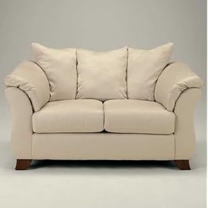With all the curves and flared design of exciting contemporary style, the rich beauty of the Durapella-Oyster Loveseat by Signature Design by Ashley Furniture from the Durapella-Oyster Upholstery Collection is an exceptional addition to any living room decor. The soft upholstery fabric flawlessly covers the plush pillow top arms, supportive seating cushions and pillow back to create a comfortable furniture collection that is perfect for a relaxing environment. With the sweeping beauty of the curved arms and saber styled finished feet, this collection captures the true excitement of great contemporary design. Enhance your homes beauty with the style and comfort of the Durapella-Oyster Upholstery Living Room Collection.