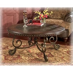 We have owned this table for almost three years now and it has held up beautifully! It has endured my three boys driving little cars around and around it - and occasionally jumping from it.. And the table has not not even suffered a scratch! The style is beautiful and looks like a much more expensive table. We have paired this table and the matching end table with a dark leather chair and light tan L-shaped section sofa. It looks great with both colors of furniture and the dark wood in our home. The middle of the table has a metal feel to it with an embossed swirl design. Drinks and decor can be placed the on embossed design with no problems of tipping.